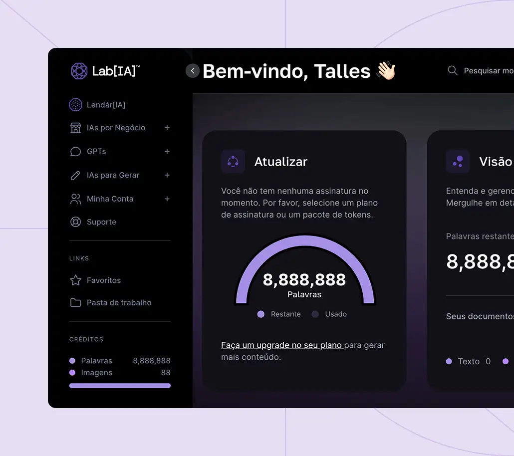 O Lab[IA] utiliza os modelos de IA mais populares, como o GPT, Dall-E e ClaudeAI, para criar texto, imagens, código e muito mais em segundos. O processo é simples. Tudo o que você precisa fazer é fornecer um tópico ou uma ideia, e nosso gerador baseado em IA cuidará do restante.